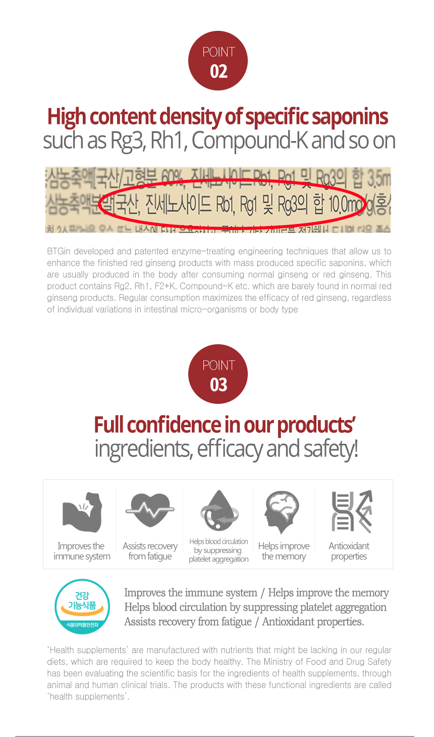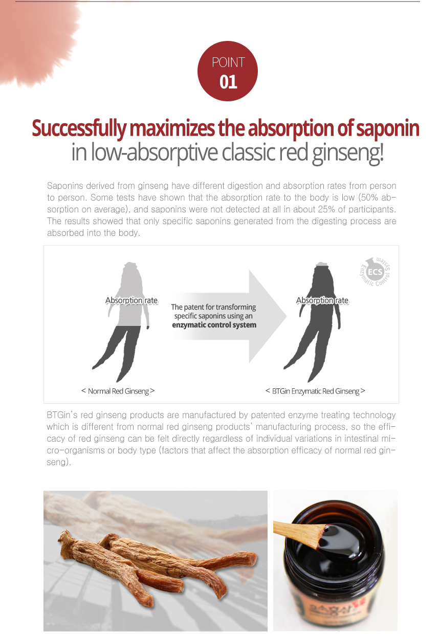 Hồng sâm lên men hiệu BTGin là sản phẩm tinh chất hồng sâm lên men với công nghệ sử dụng enzyme độc quyền hàng đầu thế giới của hãng BTGin - Hàn Quốc. Ngoài quy trình chuẩn gồm 7 bước thông thường giống các nhà sản xuất khác, công ty có bổ sung 5 giai đoạn chuyển hóa, và phân tách đặc biệt để chiết tách gần như tối đa các ginsenoside đặc biệt quý và có tác dụng kháng ung thư cao như Rg3, Compound K, Rh1, Rh2, F2+K… gần như không có trong các sản phẩm tương tự. Trên dây chuyền hiện đại đạt chuẩn (GMP) về sản xuất và quản lý chất lượng của Hàn Quốc.