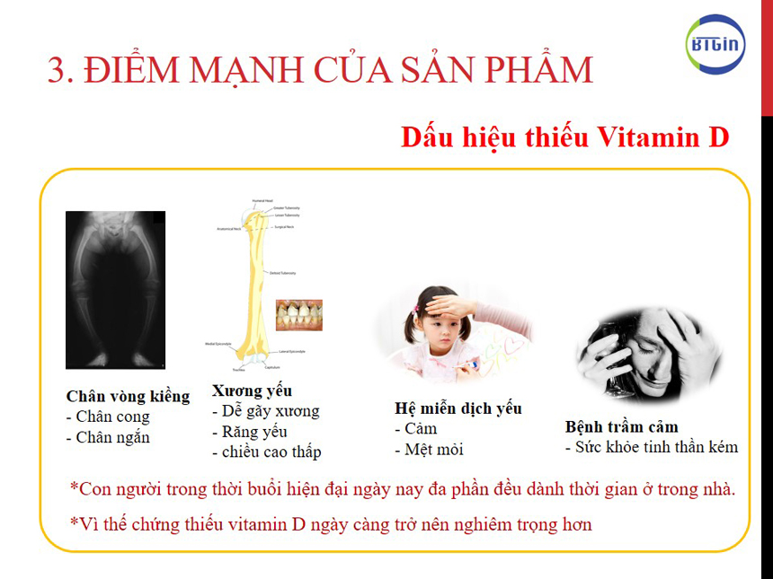 - Tăng khả năng hấp thụ canxi và photpho trong cơ thể đặc biệt cần thiết cho những bé thiếu vitamin D chậm mọc răng, còi xương. rất tốt cho sự phát triển cho cấu trúc xương của bé.