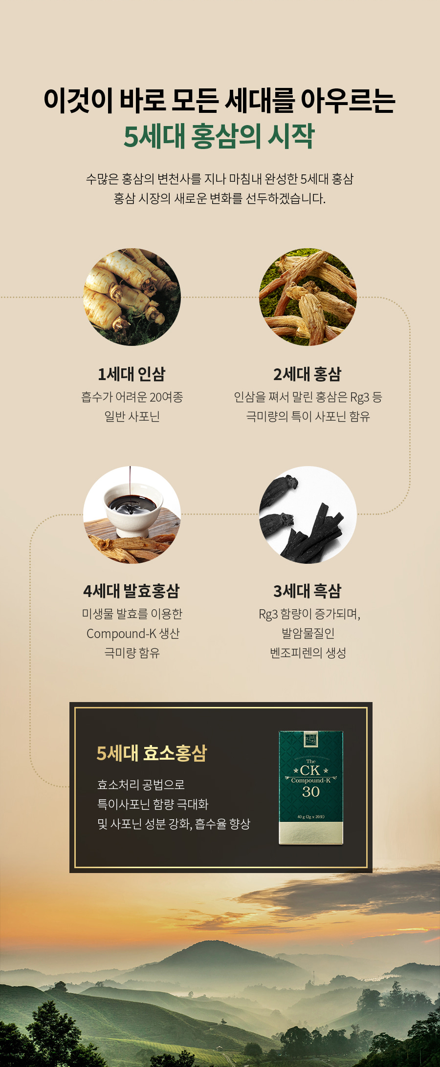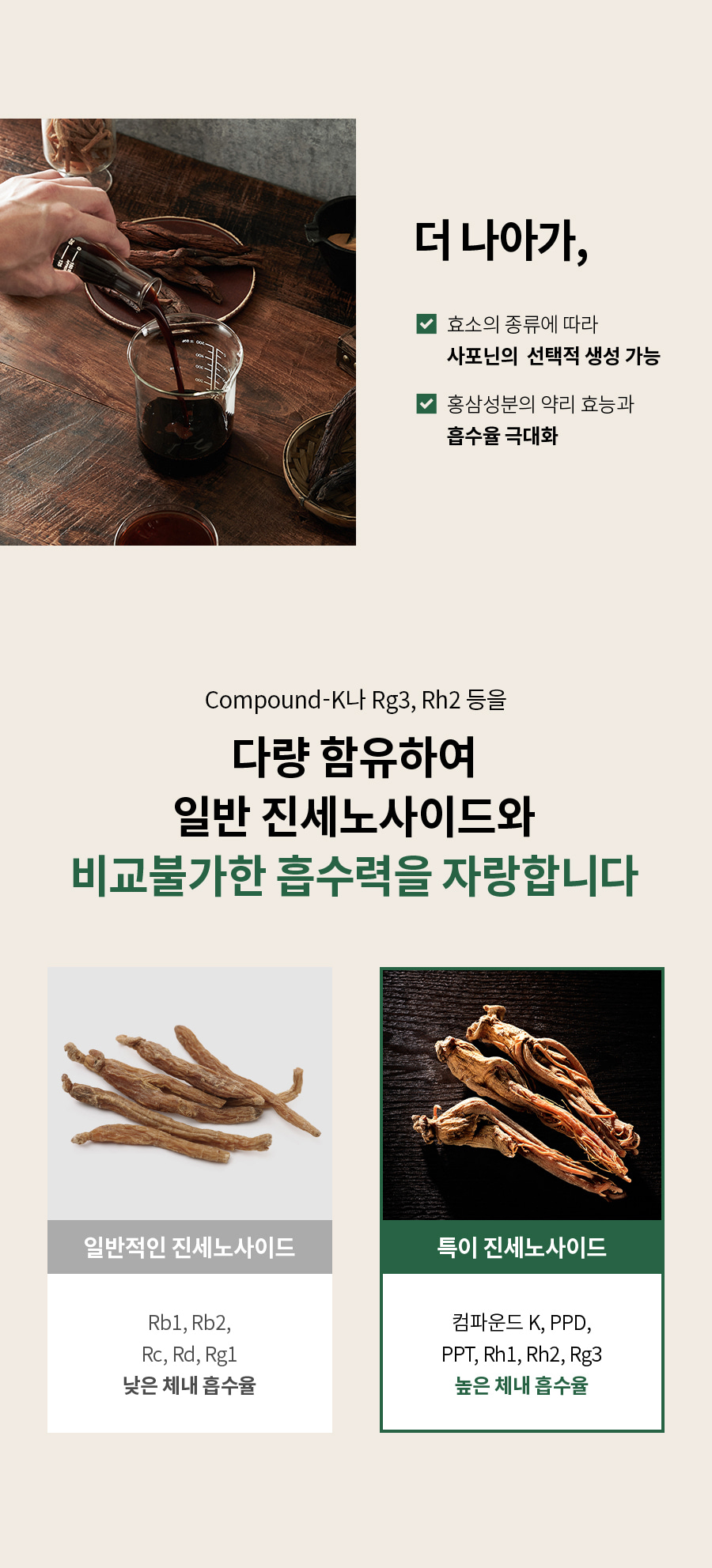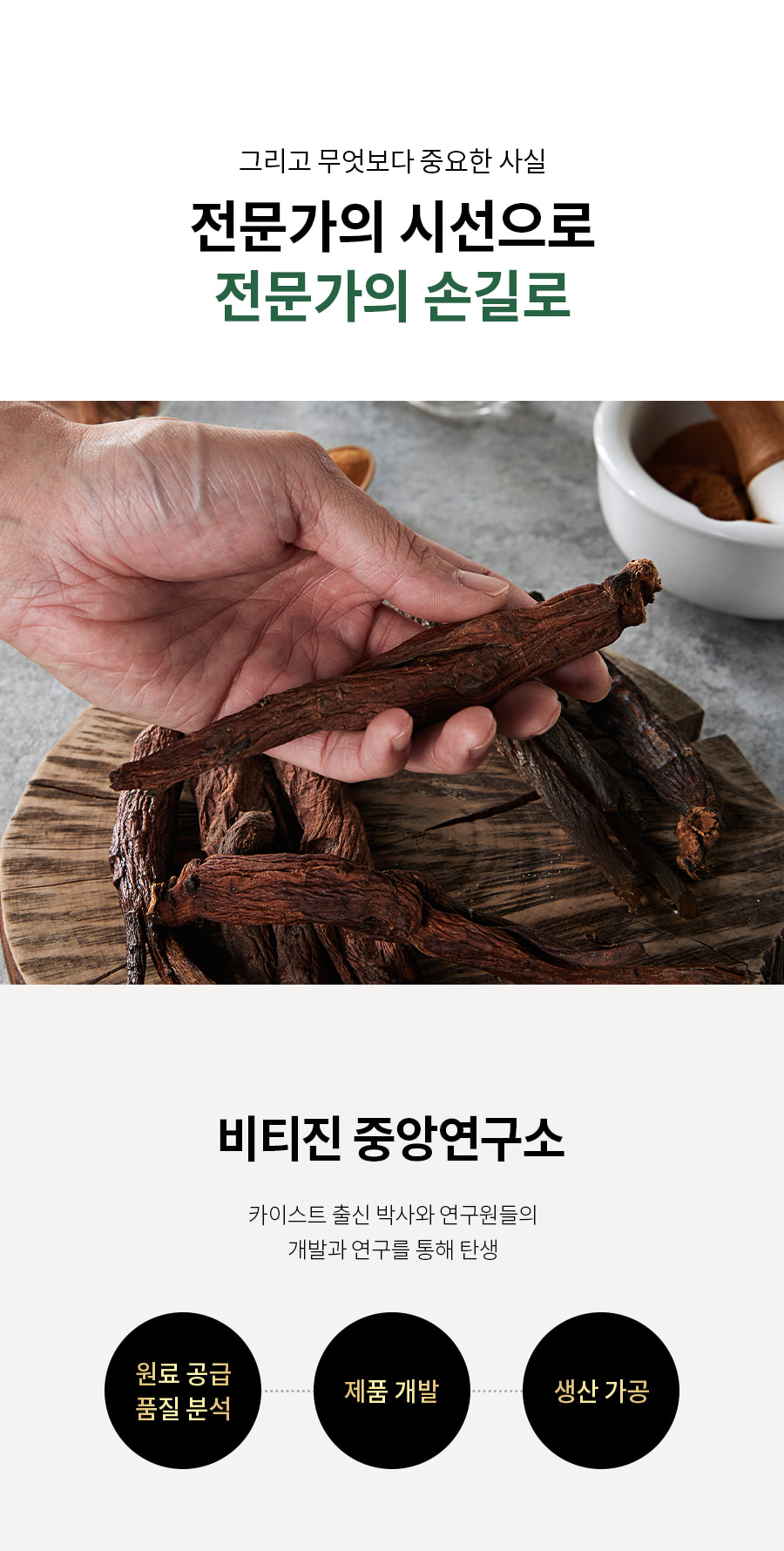 Thành phần: Bột cô đặc hồng sâm [thành phần hồng sâm 70mg/g trở lên, (nội địa Hàn Quốc)] 100% [tỷ lệ pha trộn nhân sâm thô: rễ hồng sâm 70%, hồng sâm 30%, rễ 6 năm tuổi (trong nước)]
