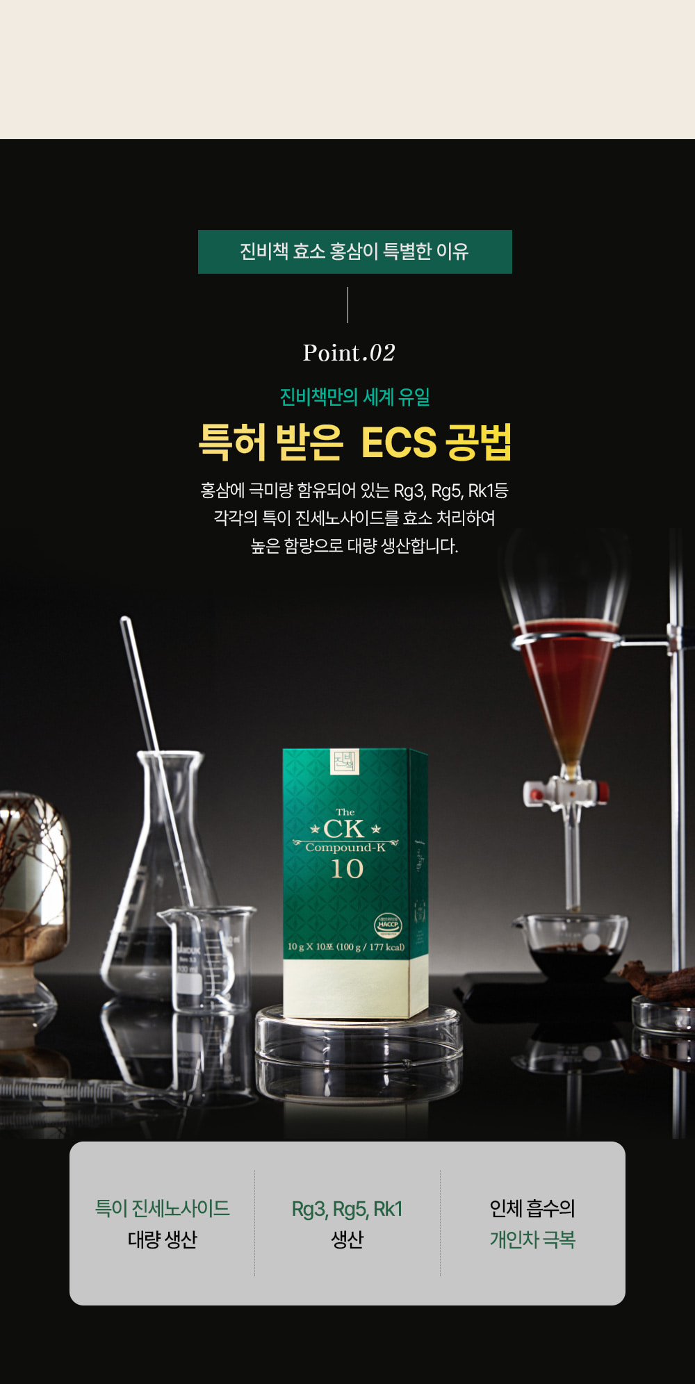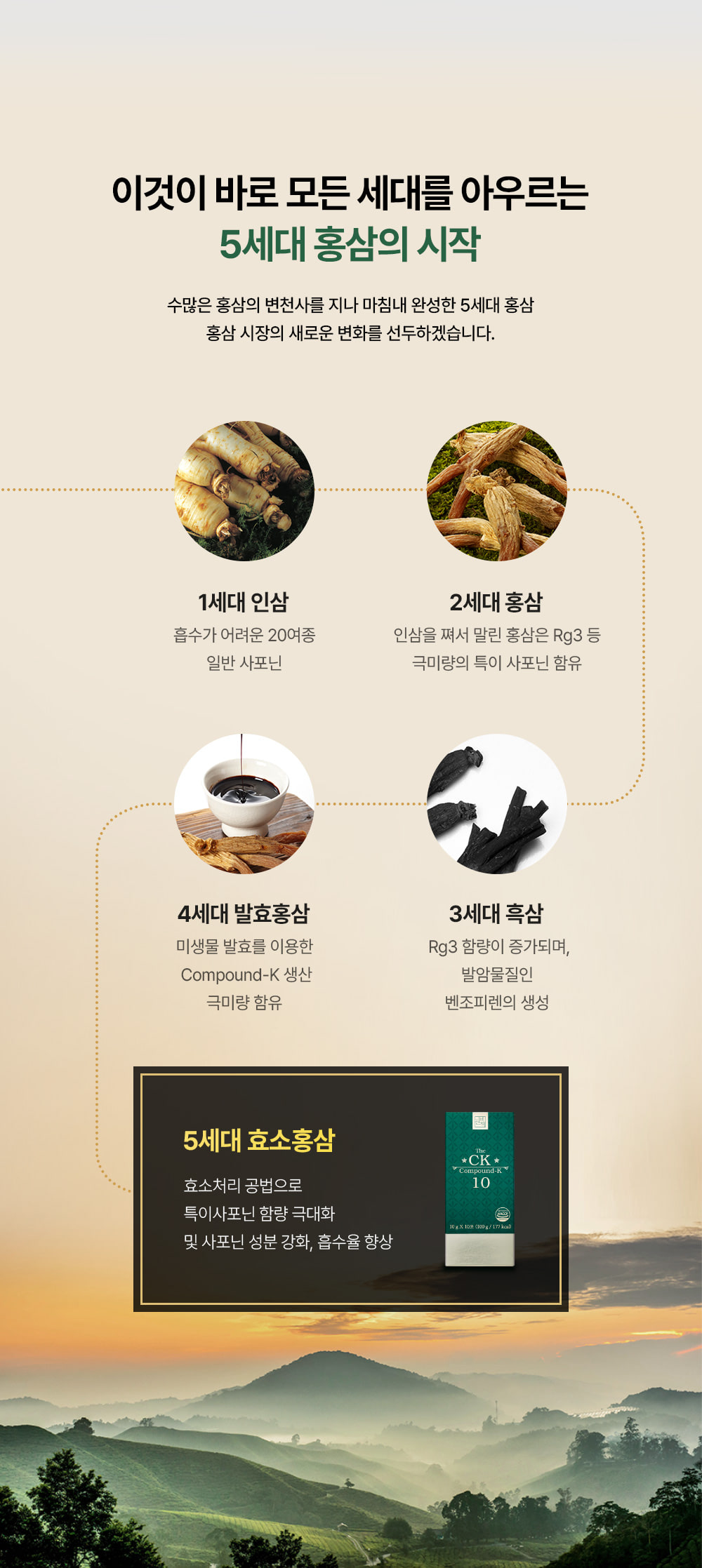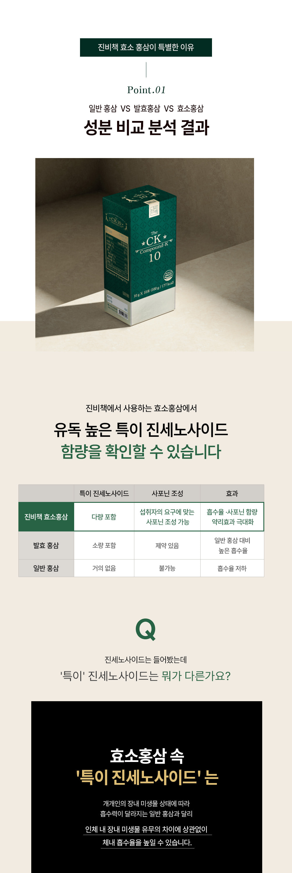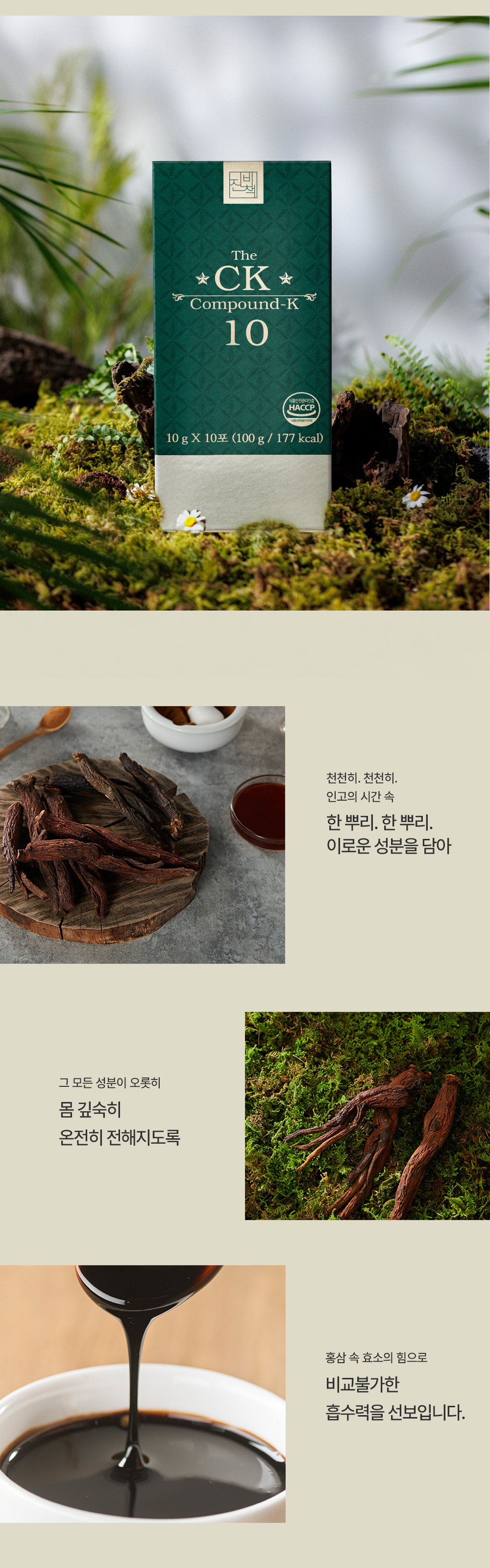 Thành phần: Hồng sâm cô đặc (6 tuổi, hàm lượng rắn 60%, nguyên liệu hồng sâm 70 mg/g trở lên, sản xuất trong nước) 30%, nước tinh khiết, maltodextrin phụ gia, bột hồng sâm cô đặc (6 tuổi, nguyên liệu hồng sâm 70 mg/ g trở lên, sản xuất trong nước) 0,75%, dược liệu.