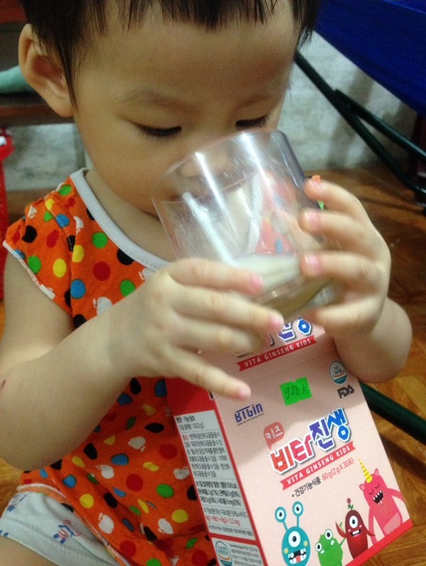 Bé từ 2 – 3 tuổi: Nên chia gói nước hồng sâm baby ra làm 2 phần. Với bé dưới 3 tuổi chỉ cho uống nửa gói/ngày.