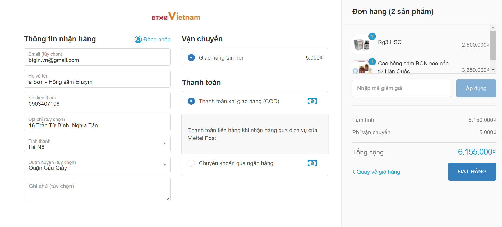 Hướng dẫn mua hàng tại BTGin Việt Nam