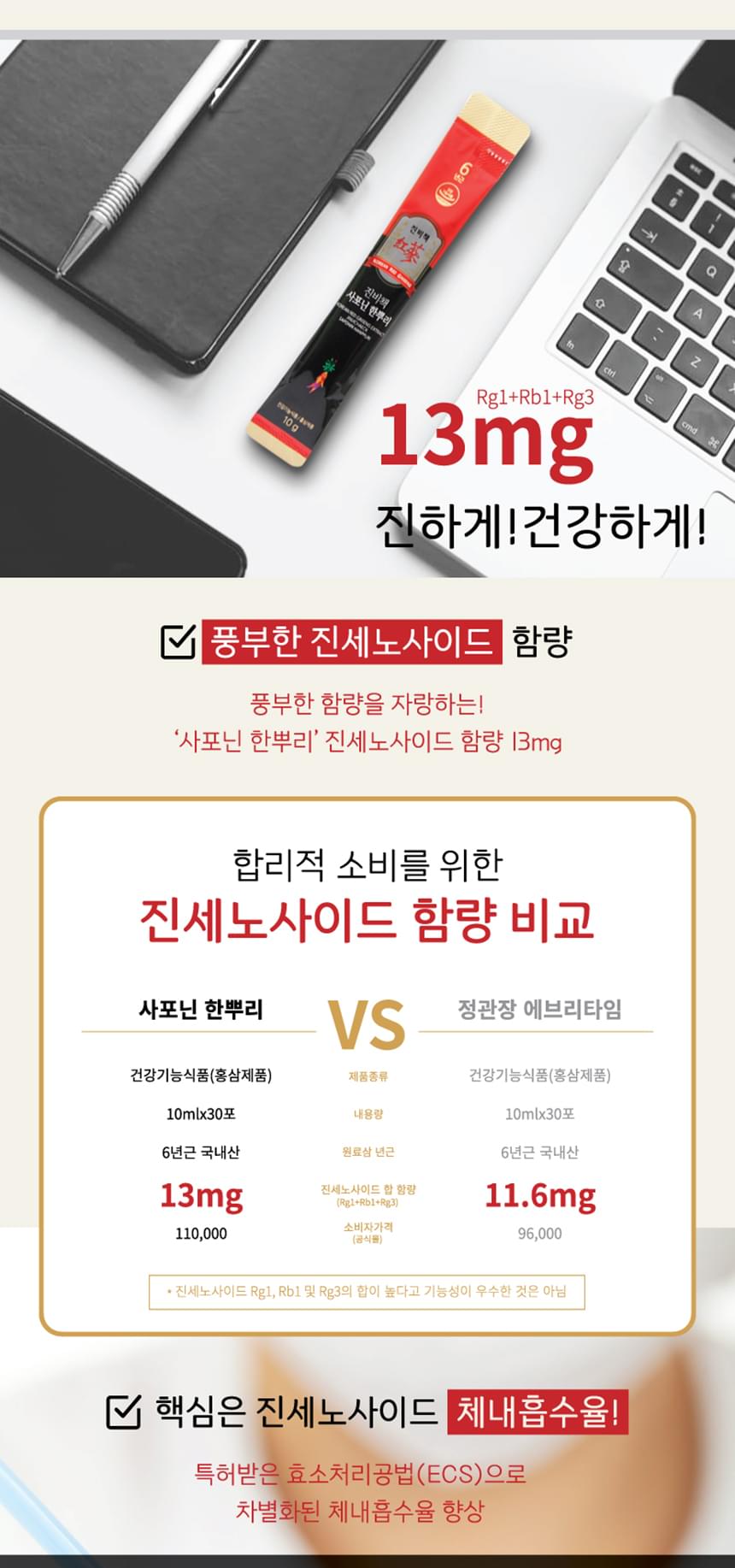 Mỗi một gói cung cấp hàm lượng Rb1+Rg1+Rg3=13mg, riêng Rg3=2mg và Compound K=0.3mg.