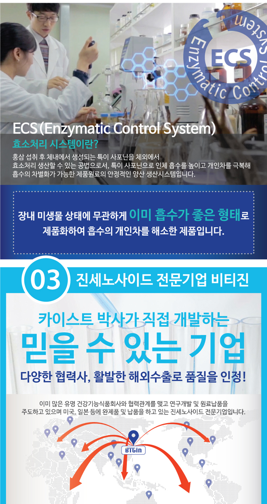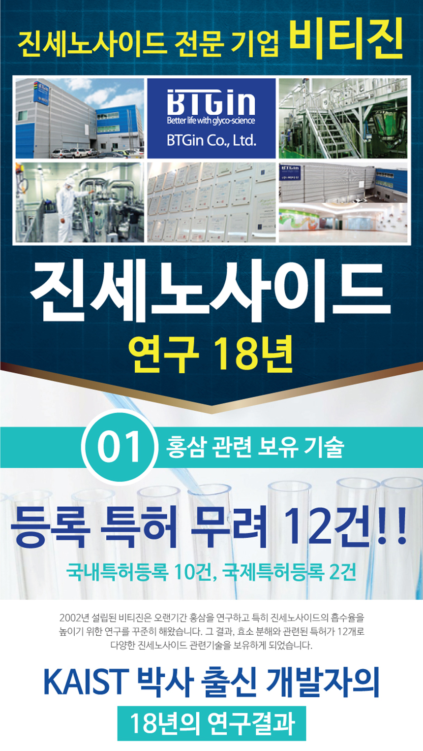Hồng sâm lên men hiệu BTGin là sản phẩm tinh chất hồng sâm lên men với công nghệ sử dụng enzyme độc quyền hàng đầu thế giới của hãng BTGin - Hàn Quốc. Ngoài quy trình chuẩn gồm 7 bước thông thường giống các nhà sản xuất khác, công ty có bổ sung 5 giai đoạn chuyển hóa, và phân tách đặc biệt để chiết tách gần như tối đa các ginsenoside đặc biệt quý và có tác dụng kháng ung thư cao như Rg3, Compound K, Rh1, Rh2, F2+K… gần như không có trong các sản phẩm tương tự. Trên dây chuyền hiện đại đạt chuẩn (GMP) về sản xuất và quản lý chất lượng của Hàn Quốc.