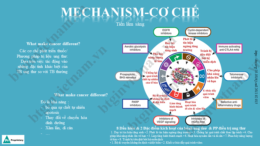 Các loại thuốc điều trị, hỗ trợ điều trị phổ biến cho bệnh nhân ung thư là tìm cách tác động vào các cơ chế chính trong việc tạo ra, kích thích, phát triển, di căn của các tế bào ung thư. Hóa, xạ trị là các phương pháp chính hiện nay trong việc điều trị ung thư. Tuy nhiên, bệnh nhân dễ bị suy kiệt sức, mệt mỏi, tác dụng phụ trong suốt quá trình hóa, xạ trị này.
