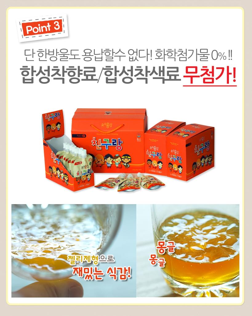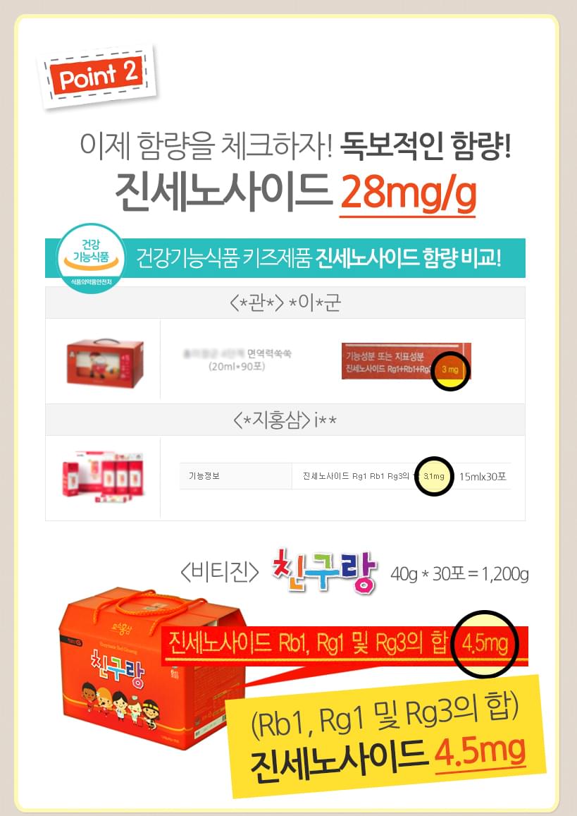 Nước hồng sâm trẻ em Chin Gu Rang là sản phẩm dành riêng cho trẻ em của hãng BTGin - Hàn Quốc. Được nghiên cứu và sản xuất trên dây chuyền hiện đại đạt chuẩn (GMP) về sản xuất và quản lý chất lượng của Hàn Quốc. Sản phẩm của công ty được chứng nhận bởi Cục quản lý thực phẩm và thuốc của Hàn Quốc (KFDA) và của Mỹ (FDA) chứng nhận là dòng sản phẩm thực phẩm chức năng. Sản phẩm hiện được bán rộng rãi tại các cửa hàng Duty Free tại Hàn Quốc và chuỗi cửa hàng thực phẩm ở Mỹ.