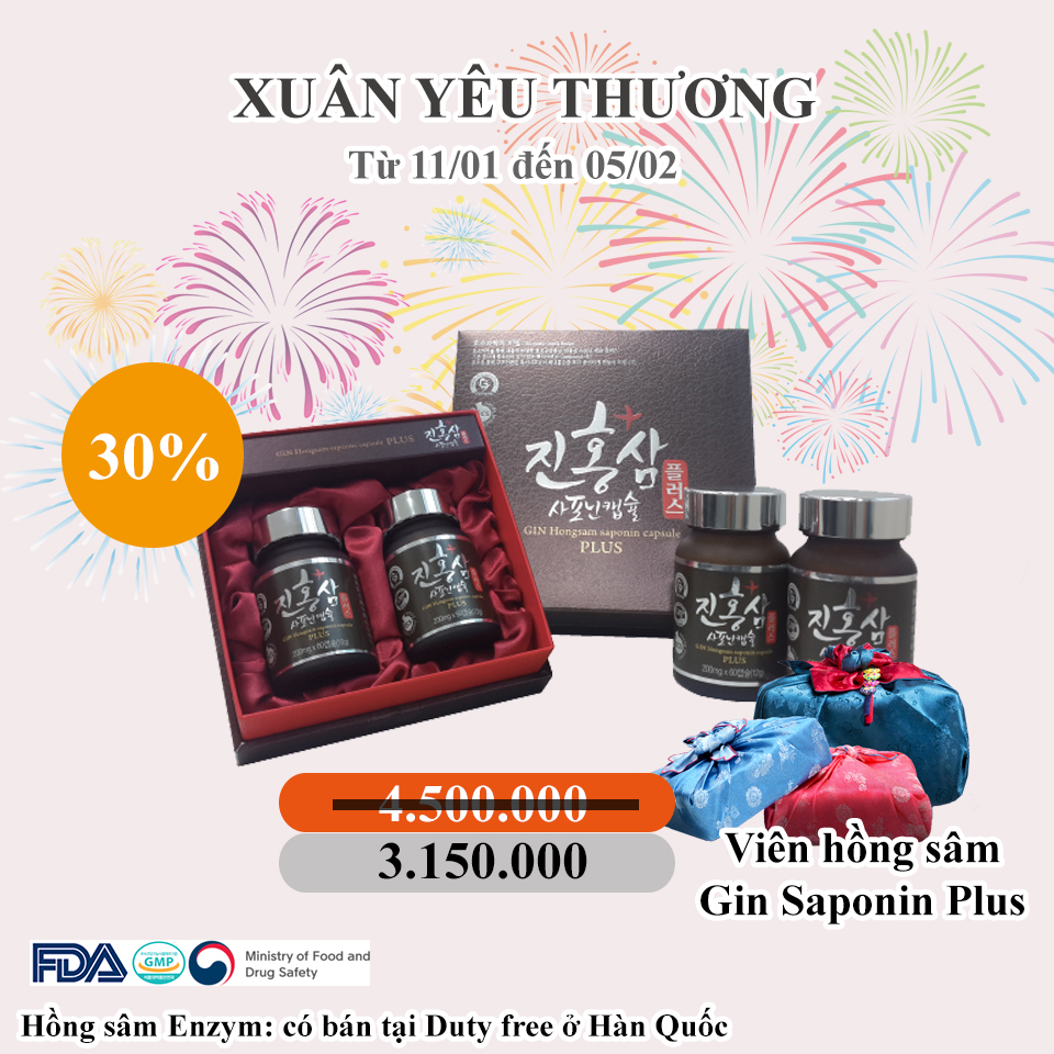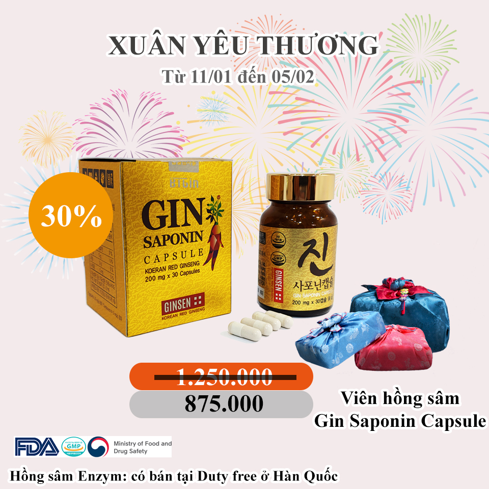 Viên hồng sâm GIN saponin capsule plus là sản phẩm cực phẩm đến từ Hàn Quốc. Nhờ công nghệ sản xuất độc nhất trên thế giới, sản phẩm có hàm lượng ginsenoside cung cấp cho một ngày lớn nhất trên thị trường. Sản phẩm giúp cho người sử dụng cảm giác ấm áp chỉ sau 30 phút. Và cả ngày luôn tràn đầy năng lượng, không bị mệt mỏi và không còn cảm giác đói bụng. Khi dùng liên tục từ 3 tháng trở lên, sản phẩm có thể giúp làm giảm mỡ máu, mỡ gan và giúp điều hòa huyết áp nhờ cơ chế giãn mạch tạm thời nhờ ginsenoside Rg3. Sản phẩm cực kỳ phù hợp với dân văn phòng và người già cần tăng cường sức khỏe. Hộp 120 viên.