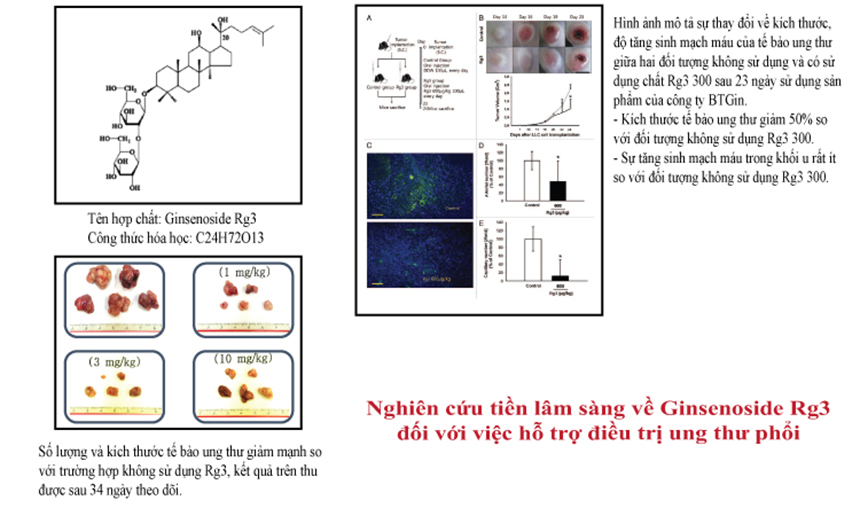 Sau 5 năm từ ngày nộp hồ sơ đăng ký, với bao sự cố gắng của các nhà nghiên cứu trong phòng thí nghiệm đạt chuẩn quốc gia của công ty BTGin, cuối cùng công ty BTGin đã đăng ký thành công bằng sáng chế số 10-0892764 ngày 02/04/2009. Qua đấy, lần đầu tiên công ty BTGin đã ra mắt với thế giới với sản phẩm bột ginsenosides giúp hỗ trợ điều trị bệnh ung thư phổi. Dòng sản phẩm Rg3 với hàm lượng Rg3 cung cấp 1 ngày từ 10mg đến 200mg ginsenoside Rg3. Đây là những dòng sản phẩm tốt nhất trên thế giới. Trong đó Rg3 được chiết xuất 100% hoàn toàn từ củ nhân sâm Hàn Quốc. Do đó, sản phẩm hầu như không có tác dụng phụ với người sử dụng