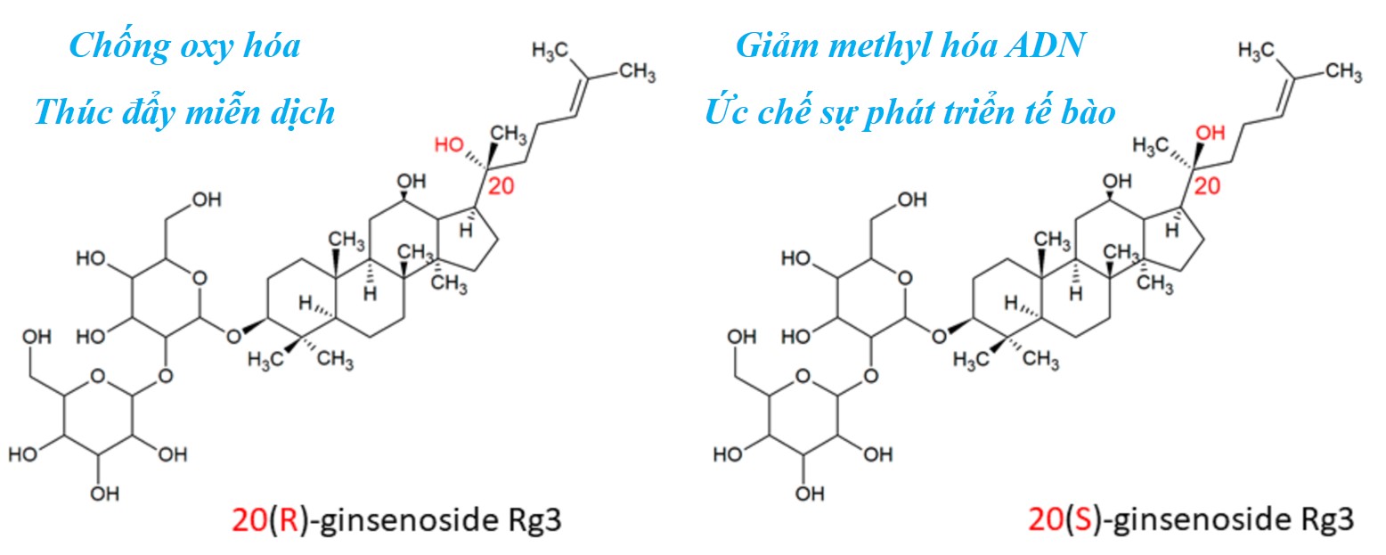 Ngày nay, cùng với sự phát triển và sự hiện đại của khoa học, rất nhiều công trình nghiên cứu đã có thể xác định từng loại hoạt chất cụ thể có ở trong Nhân sâm và có những tác dụng dược lý rất đặc trưng của mỗi loại hoạt chất. Trong hơn 30 loại hoạt chất ginsenosides có được 2 hoạt chất là ginsenoside Rh2, Rg3. Ginsenoside Rh2, Rg3 đang hiện có ở trong nhân sâm tươi và loại Sâm núi hoang dã, chỉ chiếm một lượng rất ít (chỉ 0,01 – 0,03%)